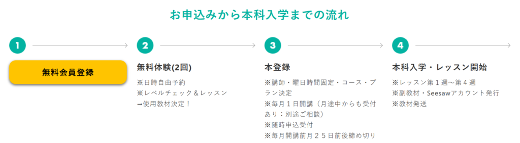 | 時間 | 希望する時間に予約ができる講師を選べばOK。1回25分。 |