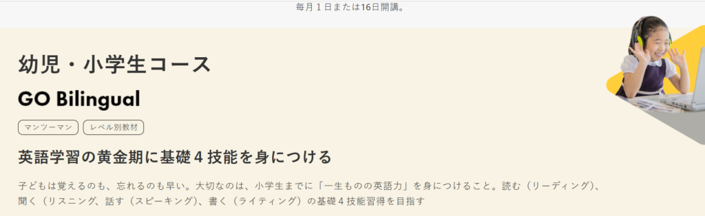 - GO バイリンガル:英語初心者・初級〜中級者(中学英語受験、インター転入検討者)